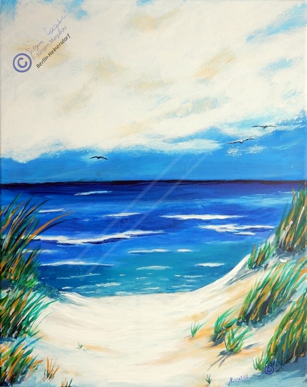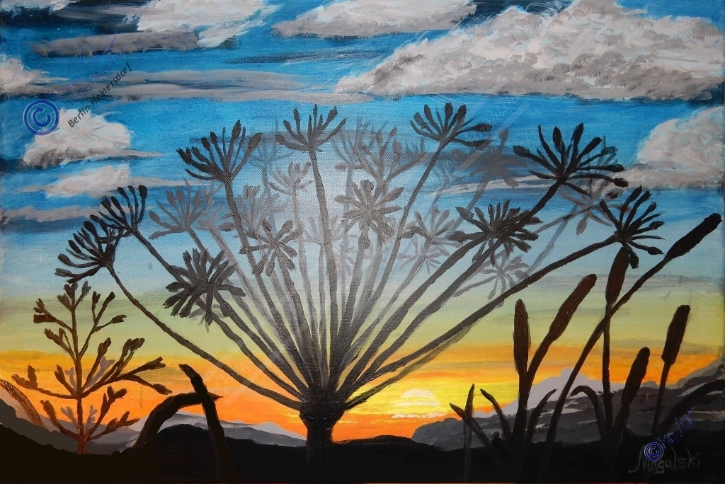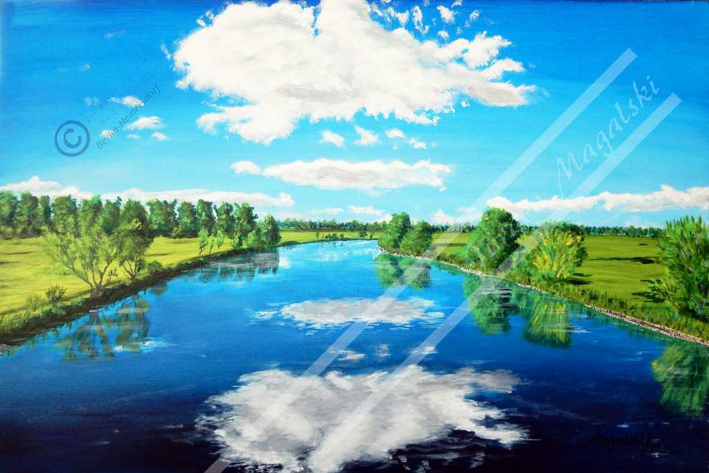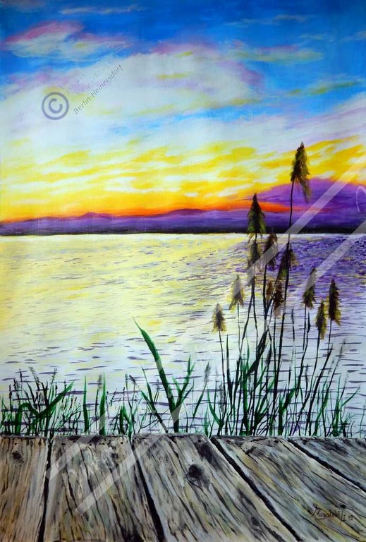Mal nehme ich pastöse Farben, die dann einem Ölgemälde ähneln, mal in der originalen Konsistenz, aber auch verdünnt im Lasurverfahren.